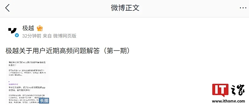 IT之家附极越关于用户近期高频问题解答(第一期)内容如下: